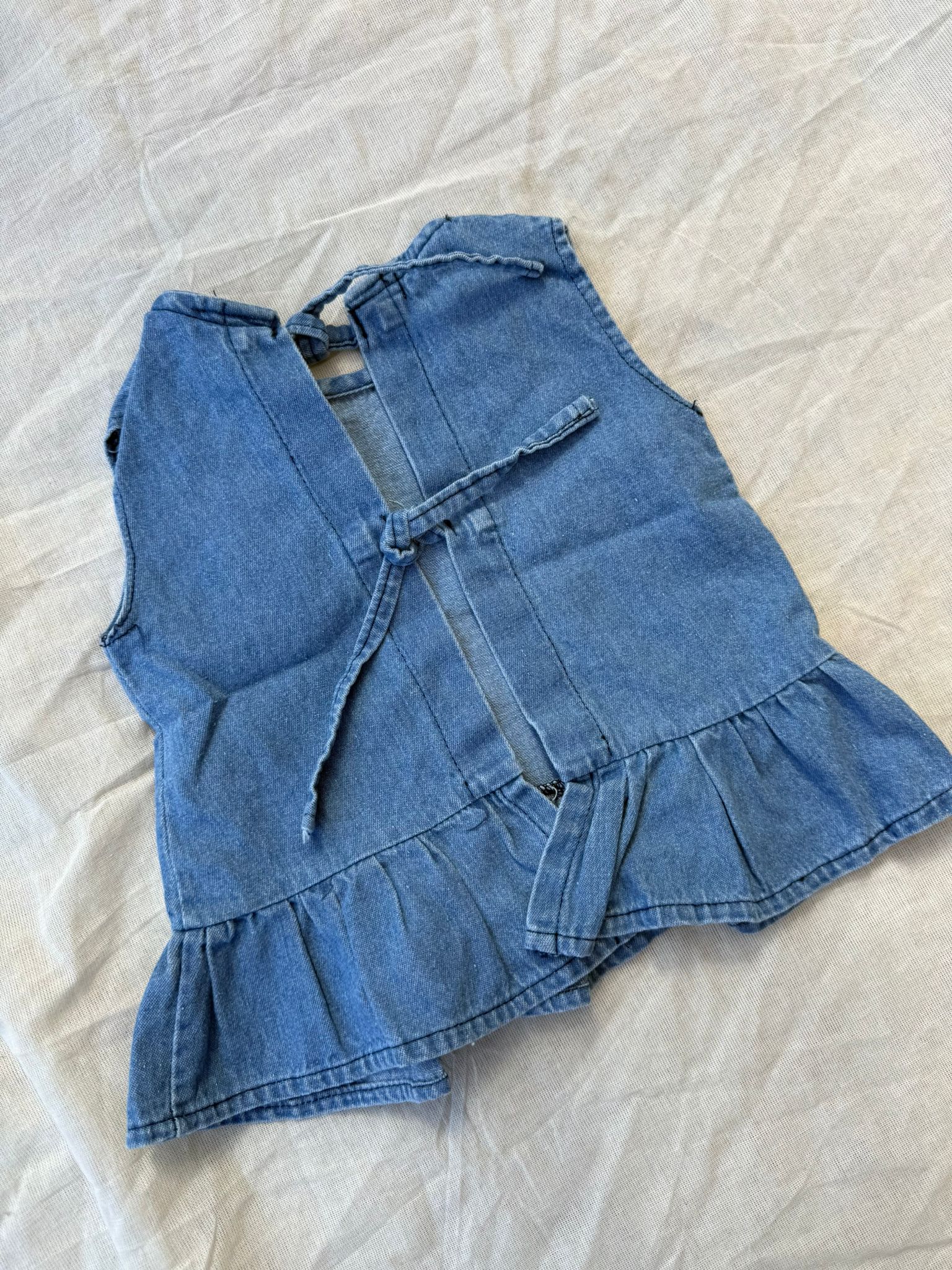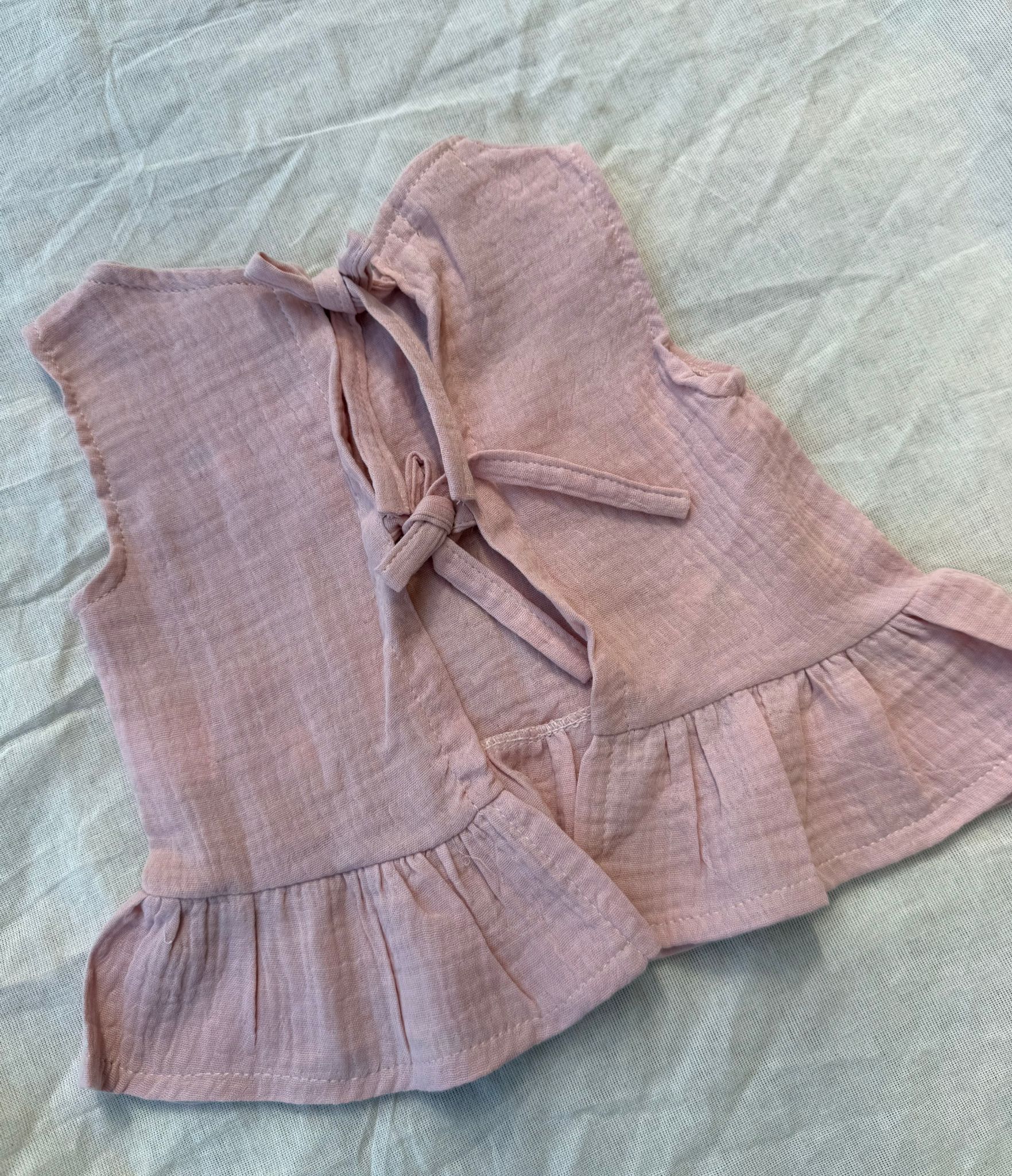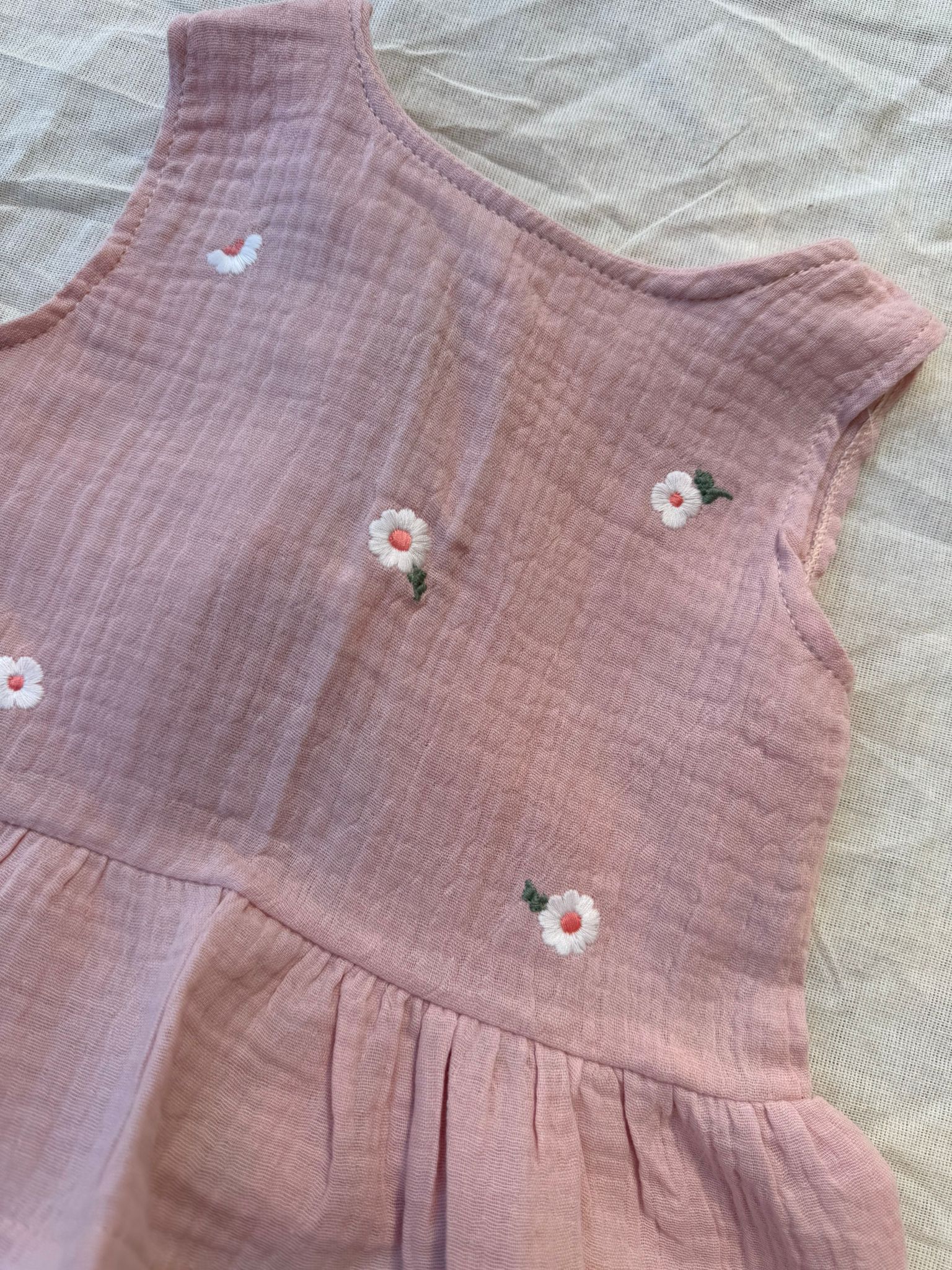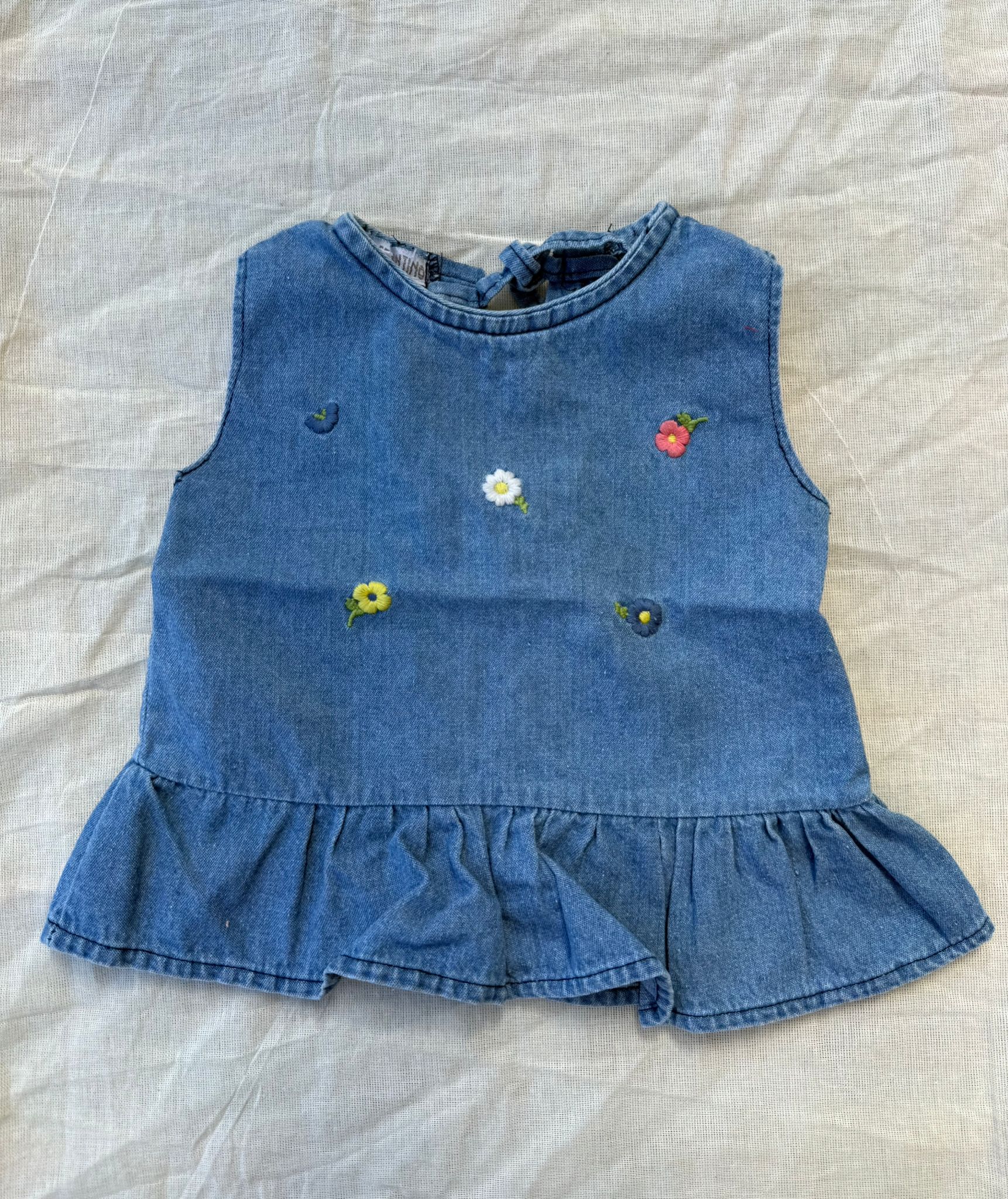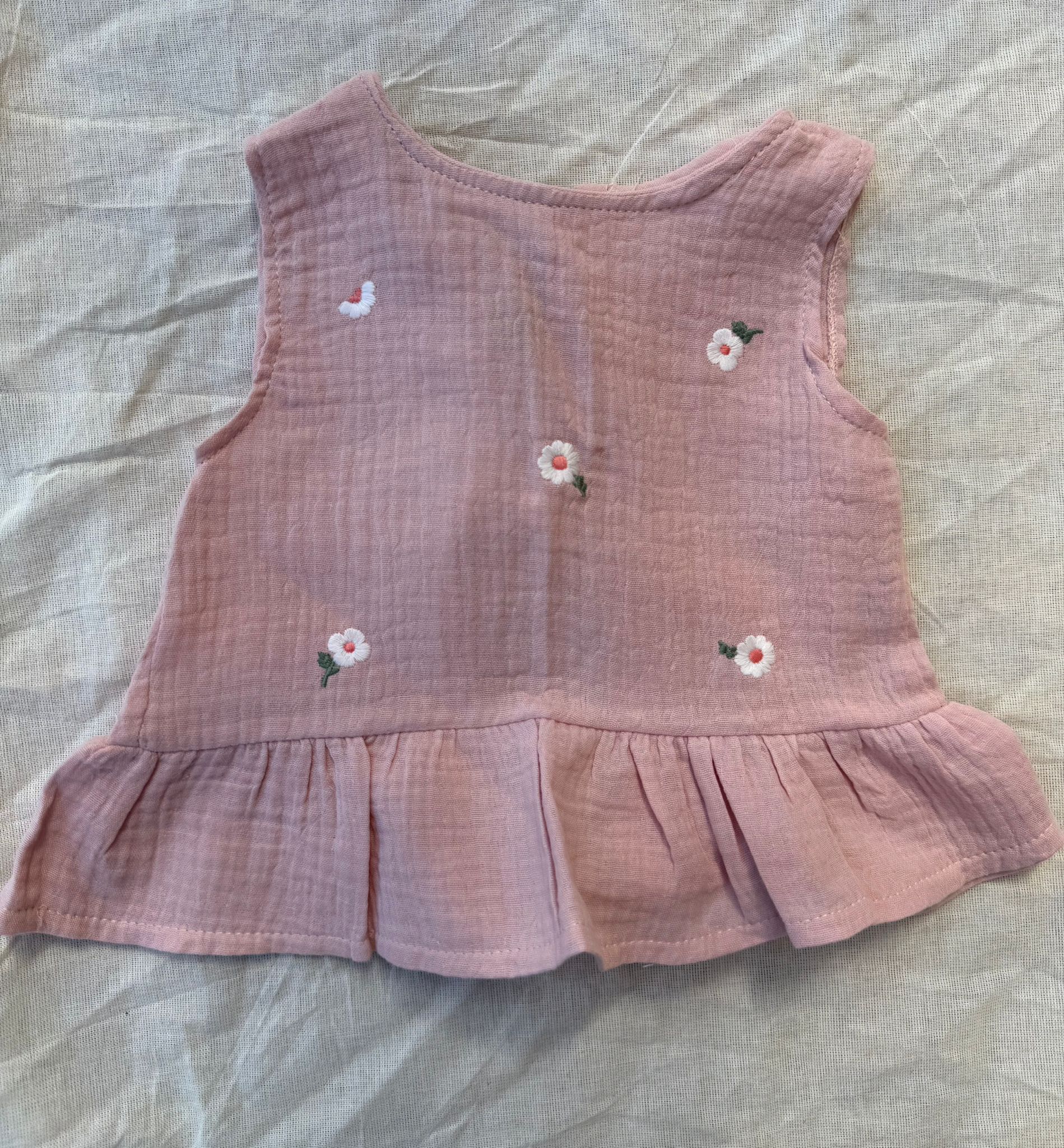 Blusa con bordado de florcitas y detalle de moñitos regulables en la espalda.
