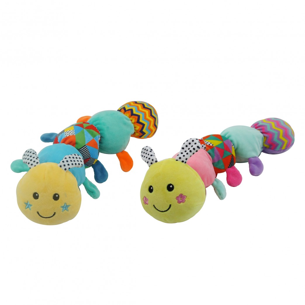 Gusano de peluche con sonajero.